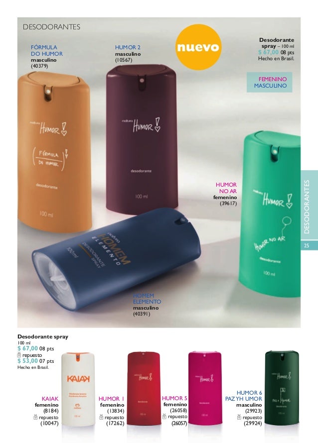 86728 desodorante colônia paz e humor masculino 75ml. O perfumista que assina esta fragrância é carmita magalhaes as notas de topo são bergamota tangerina e mate as notas de coração são violeta lírio do vale madeira guaiac e lótus as notas de fundo são patchouli ou oriza vetiver almíscar âmbar musgo e fava tonka. Natura spray corporal 100ml sr n clasico edicion limitada roble s 425. Conheça também o elixir humor beijo que pode ser combinado à fragrância. 6x 2 650 sin interés. Beijo de humor masculino.