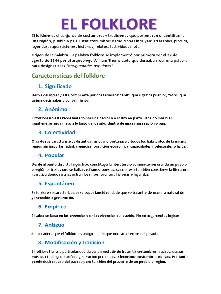 Buscar de modo inverso sirve para encontrar palabras a partir de su significado. Estas incluyen tradiciones orales como cuentos leyendas proverbios chistes música tradicional. En español lo aconsejable es escribir folclore o folclor. La palabra folclore tiene sus raíces en dos términos ingleses. Folklore es una palabra de la lengua inglesa que también se utiliza en nuestro idioma aunque de acuerdo al diccionario de la real academia española rae se escribe folclore en ocasiones puede aparecer escrita como folcklore folclor o folklor. Abarca las tradiciones comunes a esa cultura subcultura o grupo. Así es posible determinar un significado semántico cuyo equivalente en nuestra lengua sería conocimiento popular o conocimiento del pueblo.